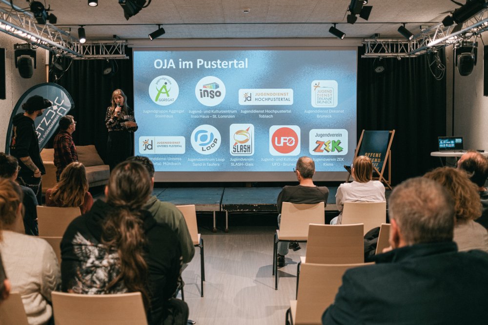 Nach der Präsentation der Standorte der Offenen Jugendarbeit im Pustertal stellten sich die Einrichtungen spielerisch und fachlich vor. In einem Kahoot-Quiz konnten die Teilnehmenden über die zehn OJA-Prinzipien – etwa Offenheit, Vielfalt oder Partizipation – grübeln. Anschließend erklärte jede Einrichtung, wie sie das jeweilige Prinzip umsetzt. Beim anschließendem Vernetzungsmarkt bot sich Gelegenheit zum Austausch, bevor der Abend bei Buffet und Musik der Band Five 4 Random ausklang. Am Treffen nahmen Vertreter*innen aus den Gemeinden Niederdorf, Olang, Percha, Prags, Prettau, Rasen-Antholz, Rodeneck, Sand in Taufers, Sexten, St. Lorenzen, Mühlbach, Mühlwald, Gais, Kiens, Ahrntal, Bruneck und Terenten teil.