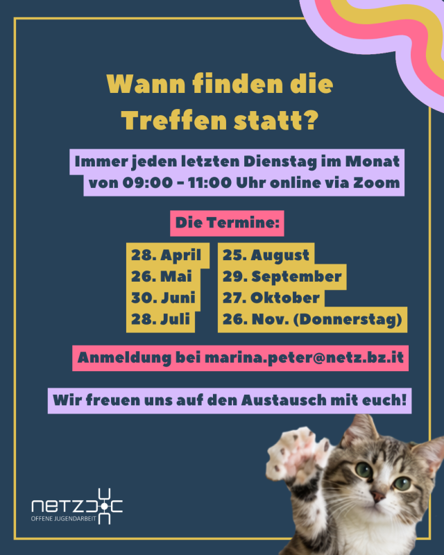 Bei Rückfragen & Anmeldung könnt ihr euch gerne an marina.peter_at_netz.bz.it wenden.