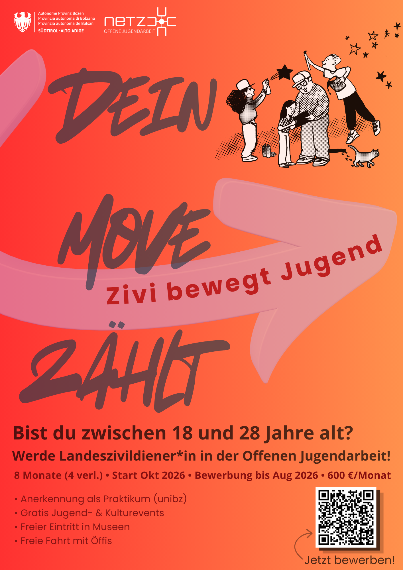 Im freiwilligen Landeszivildienst sammelst du wertvolle Erfahrungen in der Offenen Jugendarbeit, übernimmst Verantwortung und engagierst dich für die Gesellschaft.