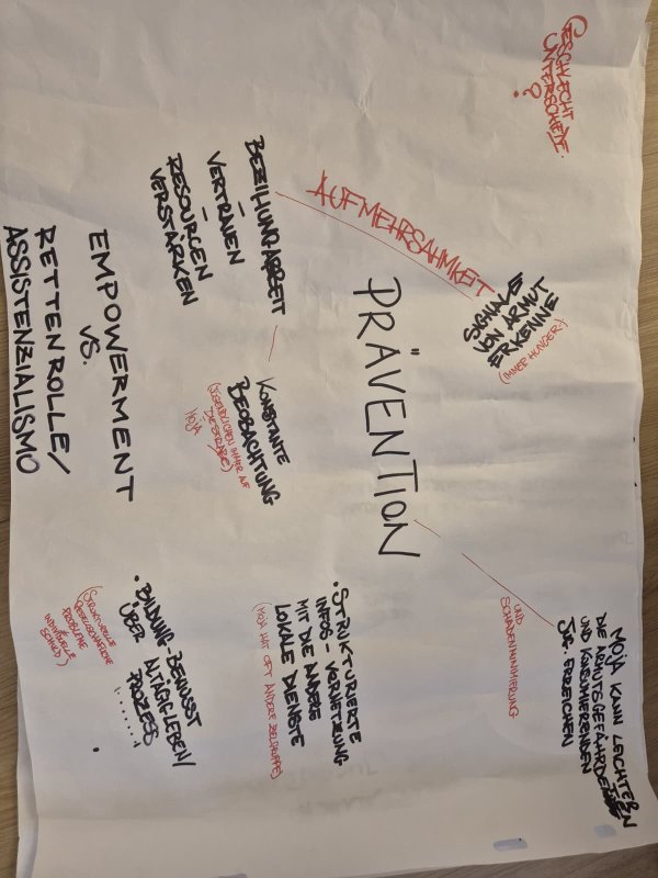 In Kleingruppen wurden diese Themen intensiv diskutiert und Handlungsstrategien für den Arbeitsalltag entworfen. Der dynamische Wechsel zwischen den Gruppen ermöglichte eine multiperspektivische Bearbeitung der Problemstellungen.