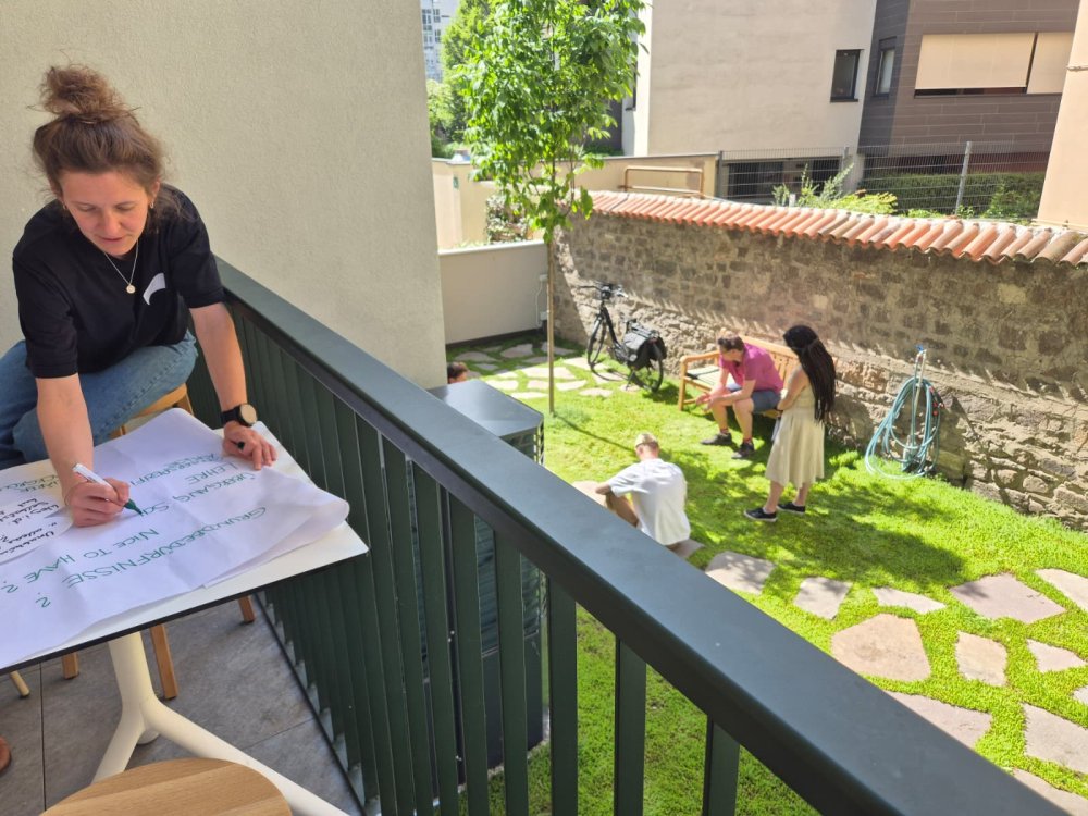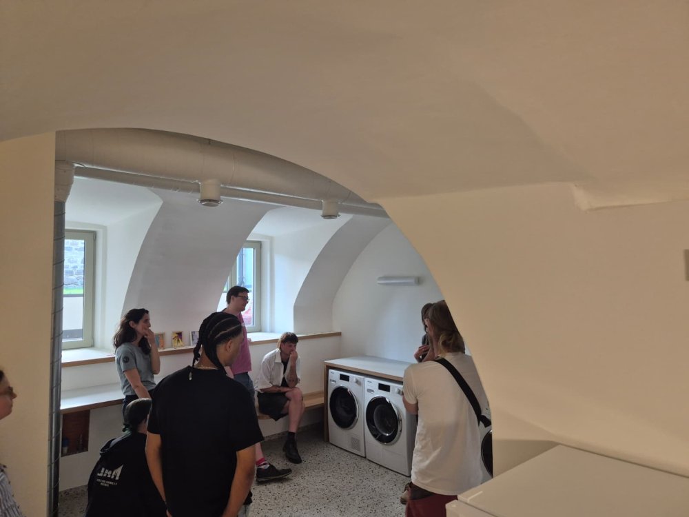 Paul Tschigg (Vorstandsvorsitzender) und Monika Stuefer (Sozialbetreuerin) gaben einen umfassenden Einblick in die Arbeit des Hauses. Im Zentrum stand dabei das Prinzip „Housing First“: Wohnen wird hier als unveräußerliches Menschenrecht begriffen. Anders als bei herkömmlichen Modellen, in denen sich Betroffene erst als „wohnberechtigt“ beweisen müssen, ist die stabile Wohnung hier nicht das Ziel am Ende eines langen Weges, sondern der erste Schritt. Ohne Vorbedingungen wie Abstinenz oder Therapie erhalten Menschen Würde und Stabilität zurück - die Basis, um das Leben wieder selbst zu gestalten. Ein Rundgang durch die Einrichtung, von den Wohnungen bis zum Gemeinschaftsgarten, veranschaulichte den Teilnehmenden, wie dieser respektvolle Ansatz in der Praxis gelebt wird.